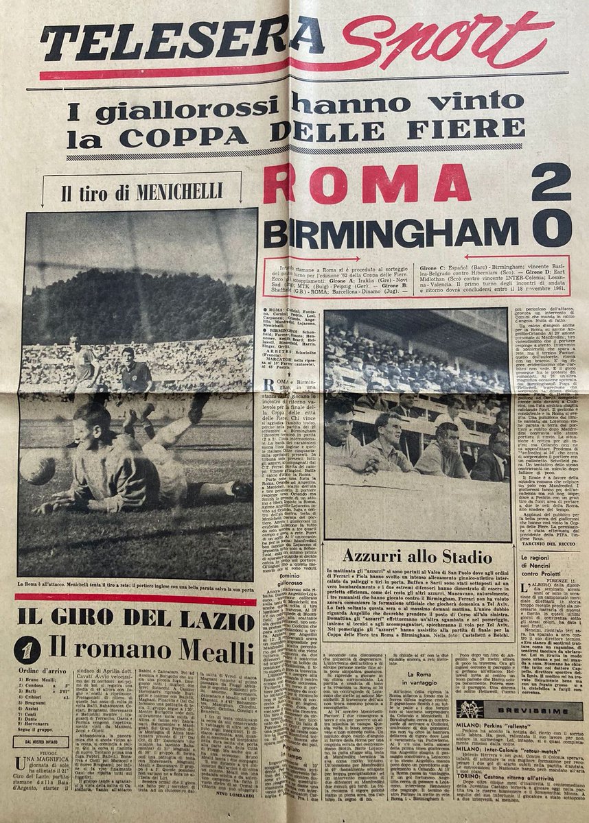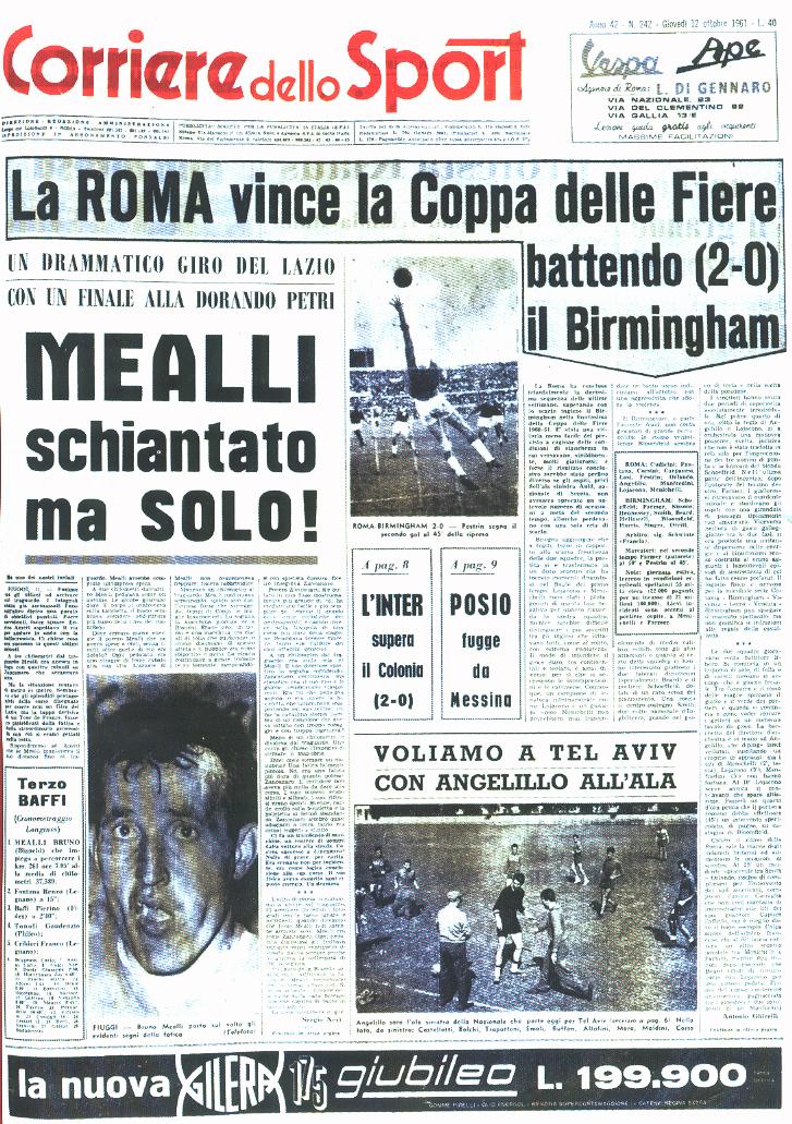 من البداية وحتى عام 1960م كانت الأندية الإيطالية بدون بطولات أوروبية وفي عام 1961م روما شارك في بطولة كأس المعارض الأوروبية ونجح بالوصول إلى النهائي ضد برمنغهام وفاز بالبطولة بعد الفوز بمجموع المباراتين 4-2