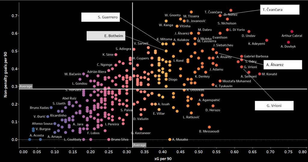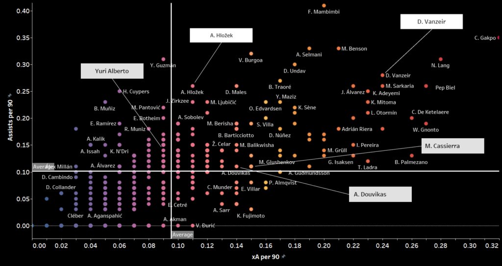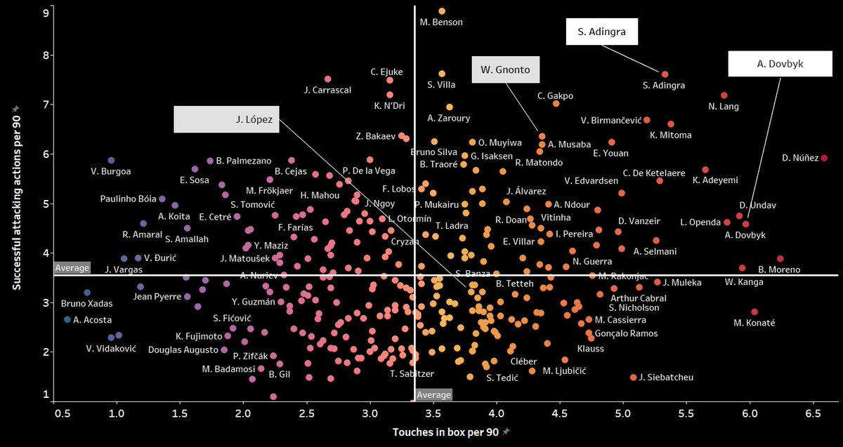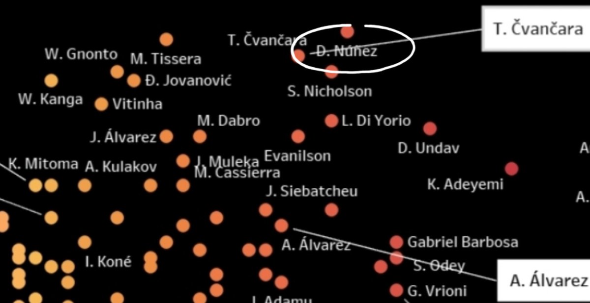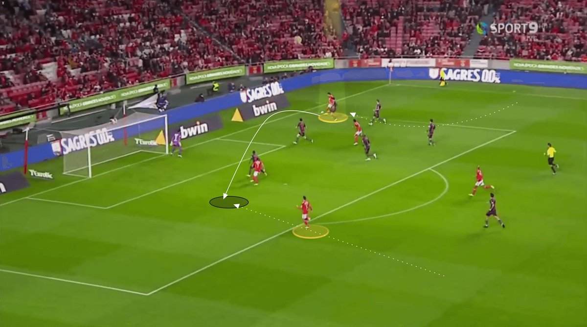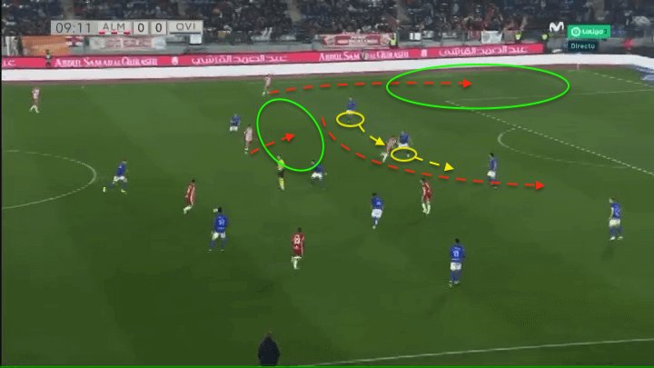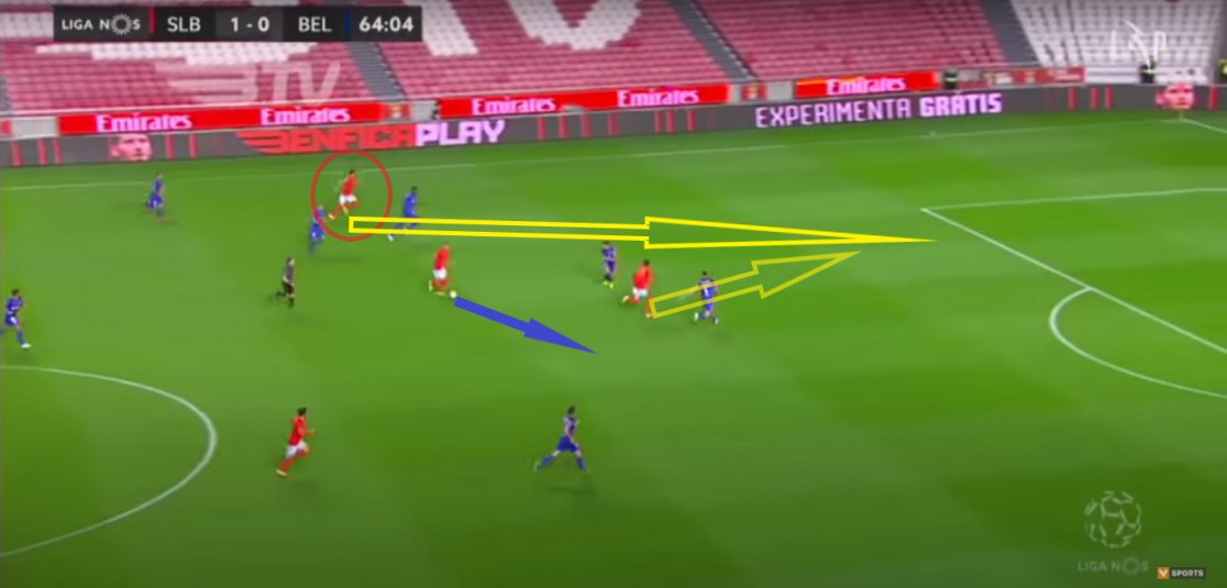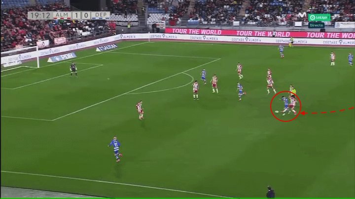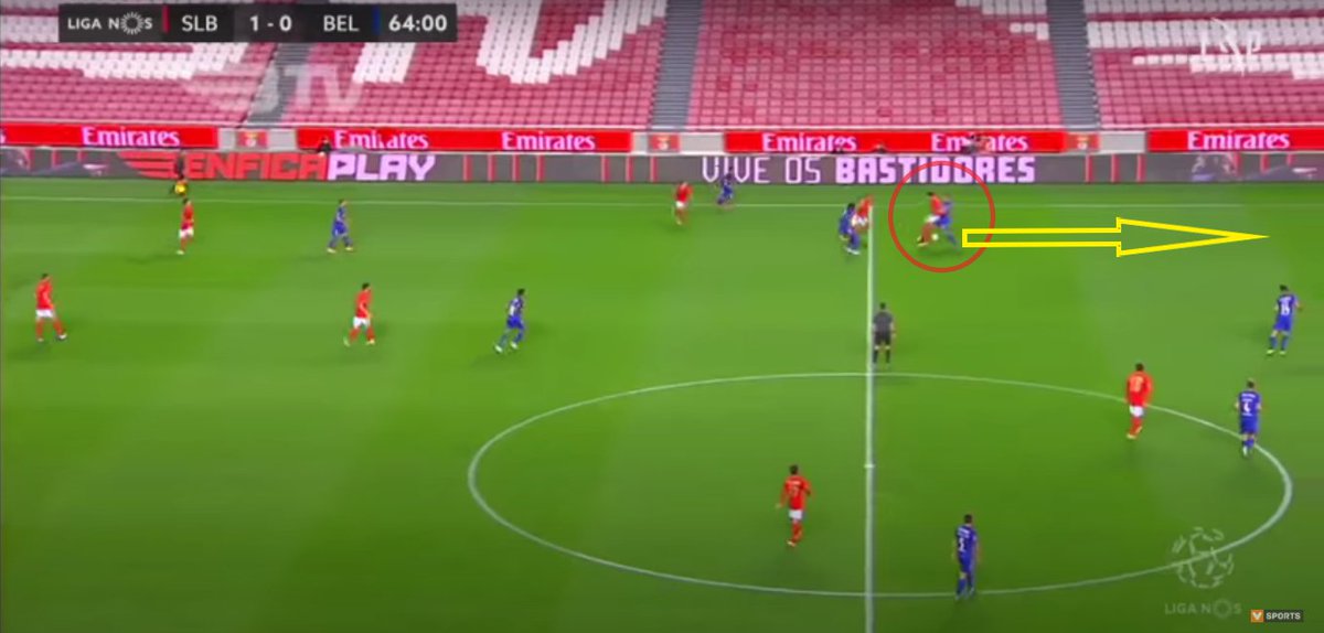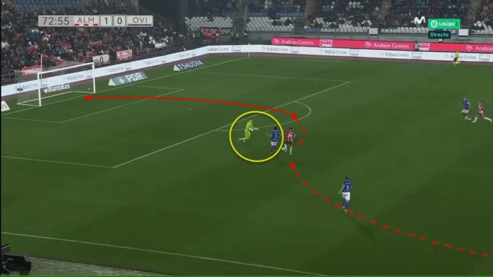 يحتل اللاعب البالغ من العمر ٢٢ عامًا مسافات بين المدافعين ، وغالبًا ما يتطلع إلى القيام بجولات حادة خلف الخطوط الدفاعية ، مما يؤدي إلى جر المدافعين معه في هذه العملية. إنه لا يلين في الضغط ويظهر معدل عمل مثير للإعجاب. يمكننا أن نرى أنه احتل مساحات متعددة في جميع أنحاء الملعب.