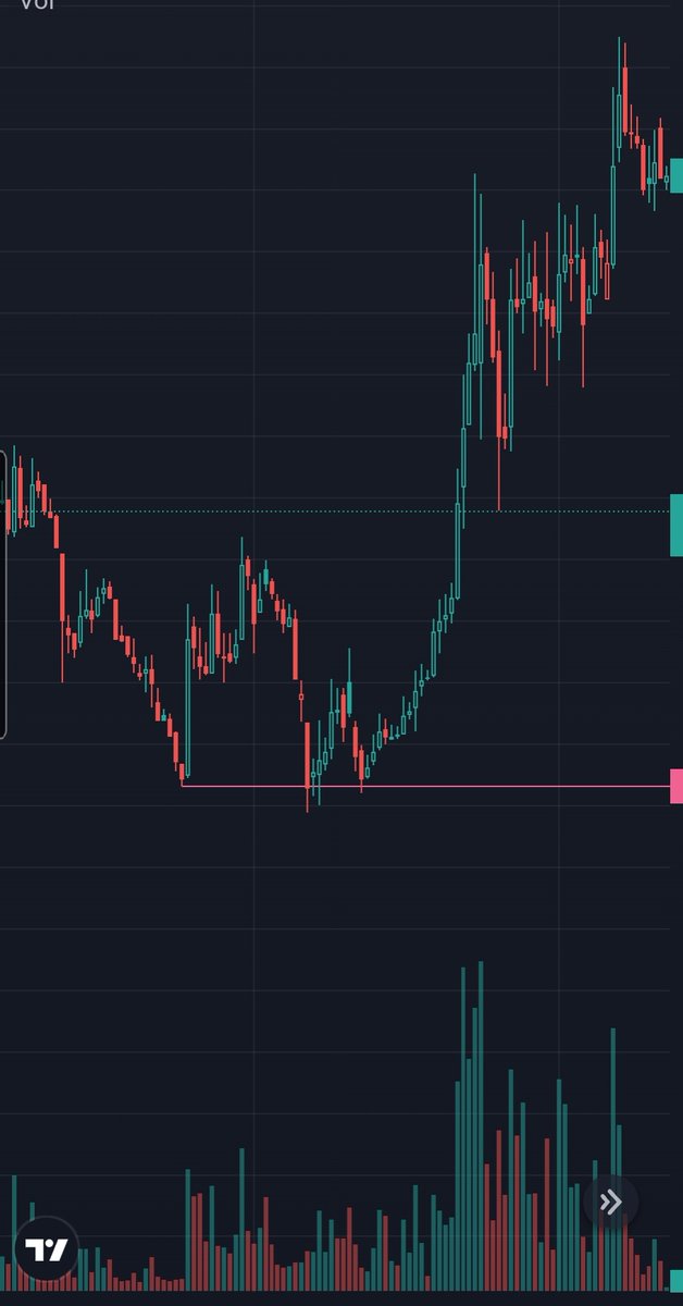 كسر مؤقت لمنطقة دعم سابق ب احجام تداول متوسطه والنزول عن الدعم بشكل اعمق ثم العودة فوق الدعم واختبار الدعم