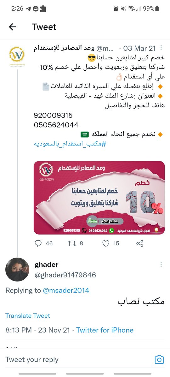 @msader2014 @Musaned_DL @AAbuthnain @Ahmed_S_Alrajhi @HRSD_SA ريا وسكينه معد يردوا خلاص