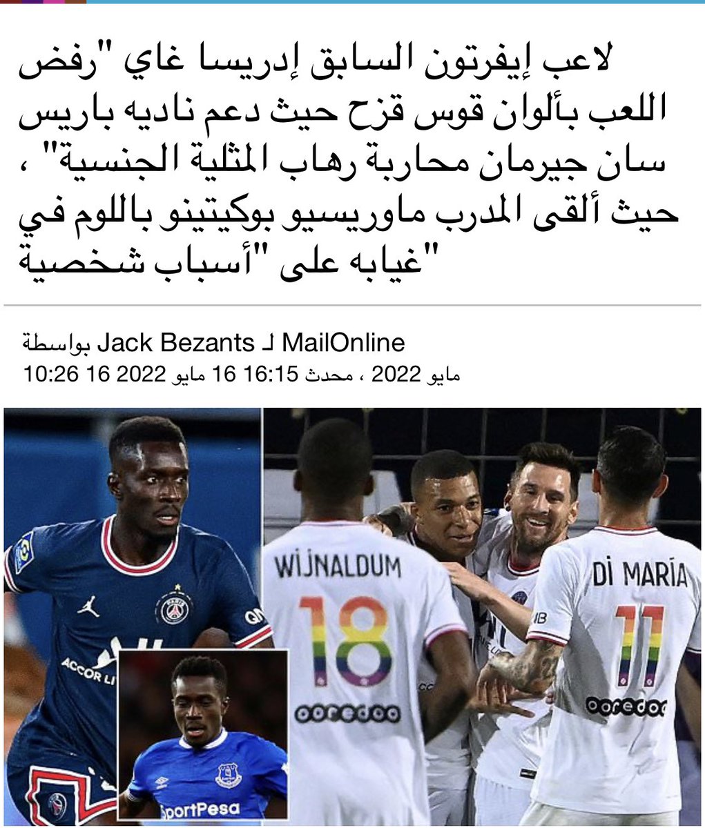 في نادي باريس "إدريسا" من قبل لجنة الأخلاق بالاتحاد الفرنسي لأنه تغيب عن المبارة لعدم اللعب بقميص يحمل شعار الشواذ، هذا ينافي الحرية المزعومة عند الغرب الذي يجعلك تفعل ماتريد
