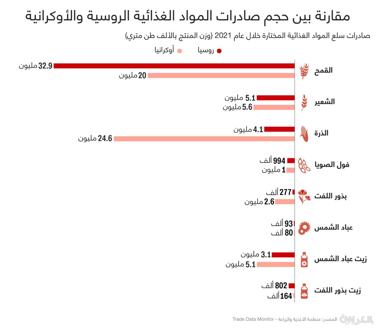 تعتبر روسيا سادس إقتصاد في العالم , وتعتبر روسيا موردًا رئيسياً في سلاسل إمداد الغذاء. حيث تحتل المركز الأول في صادرات القمح وتأتي أوكرانيا خامساً.