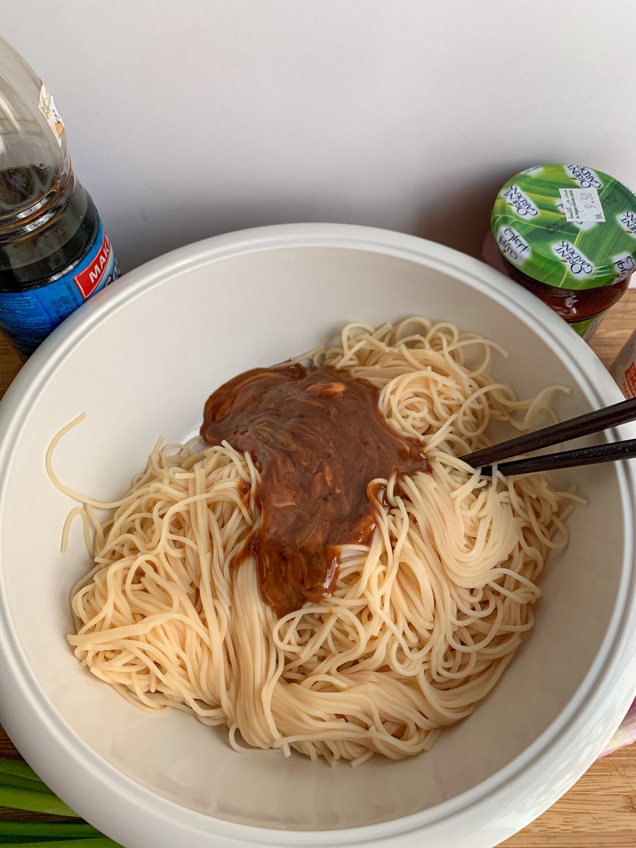 شفت الطريقة بالتيك توك وقلت ليش ما اجربها والحين صارت ادمان هذي ثالث مرة اسويها 😋 المكونات كلها بالصورة ما عادا السكر البني باختصار عبارة عن نودلز مسلوقة والصوص (قابل للتعديل حسب ذوقكم):