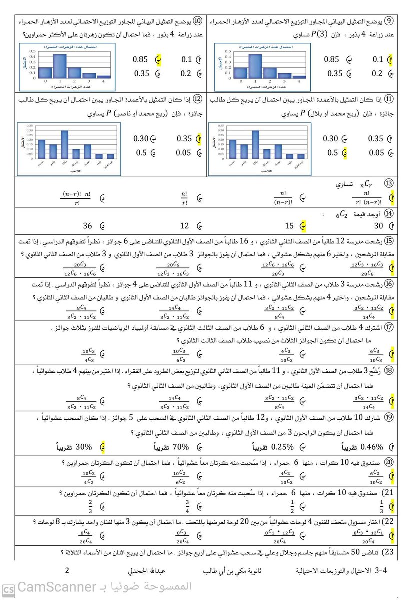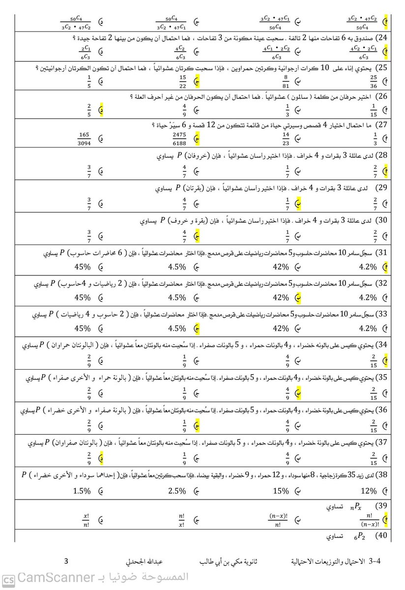 أوراق عمل لدرس الاحتمال والتوزيعات الاحتمالية رياضيات6