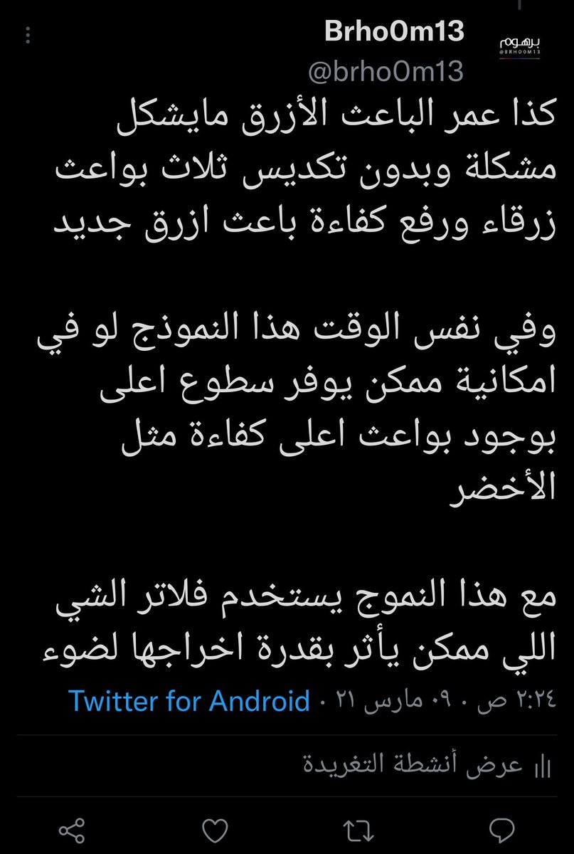 انا اول من اقترح على وسائل التواصل الإجتماعي الفكرة اللي تعتمد على تغير الهيكل الأزرق اللي يعتمد على ثلاث طبقات عضوية زرقاء فقط واستخدام بواعث عضوية اخرى غير الأزرق لتعزيز كفاءة اللوحة وامكانية انتاجها ودخولها السوق