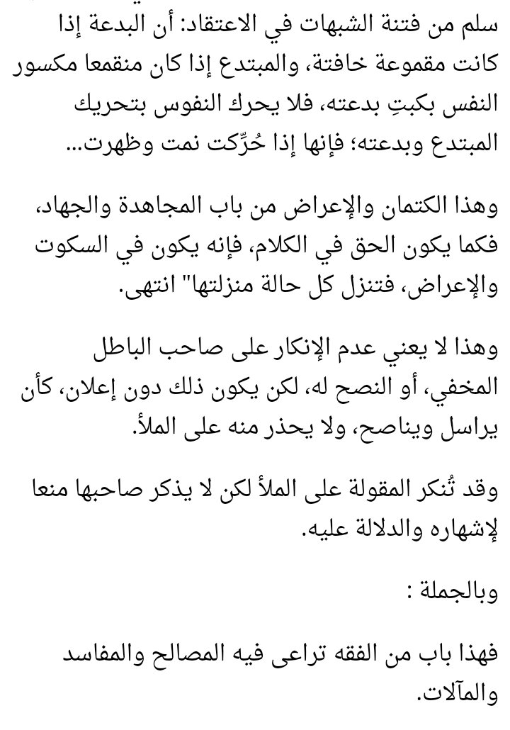 لكن لا يجب ان تصبح هذه الشبهات مواضيع عامة يتكلم عنها الناس ويؤدي هذا لانتشارها