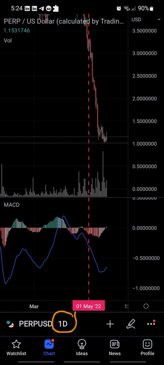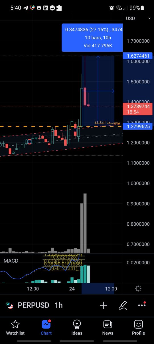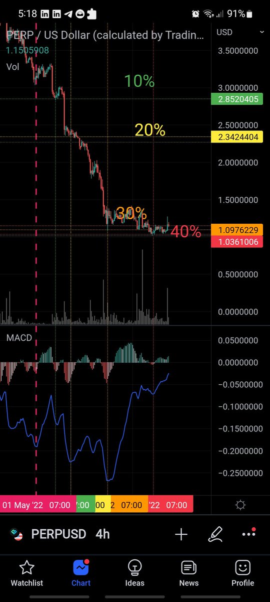 شخص معه 10 الاف دولار وقرر يشتري عملة PERP بناء على طريقة #عكفة_الماكد على فريم ال 4 ساعات (هدف الربح عنده من اسبوعين الى شهر)