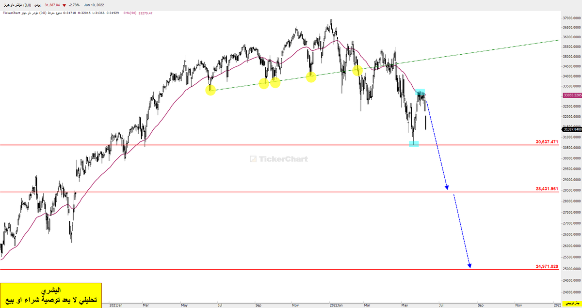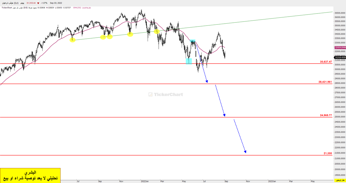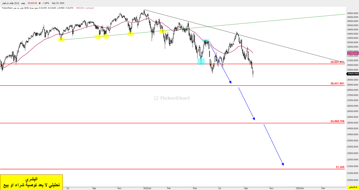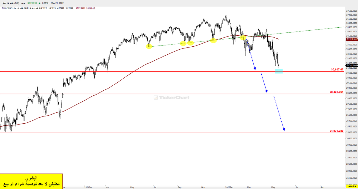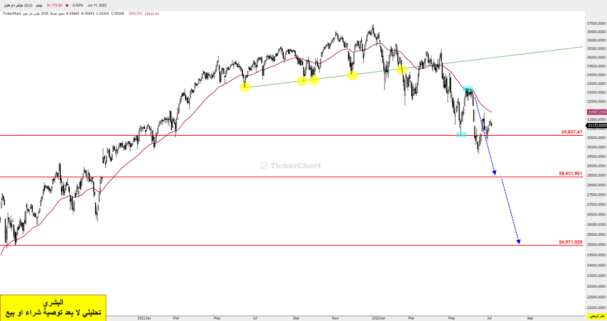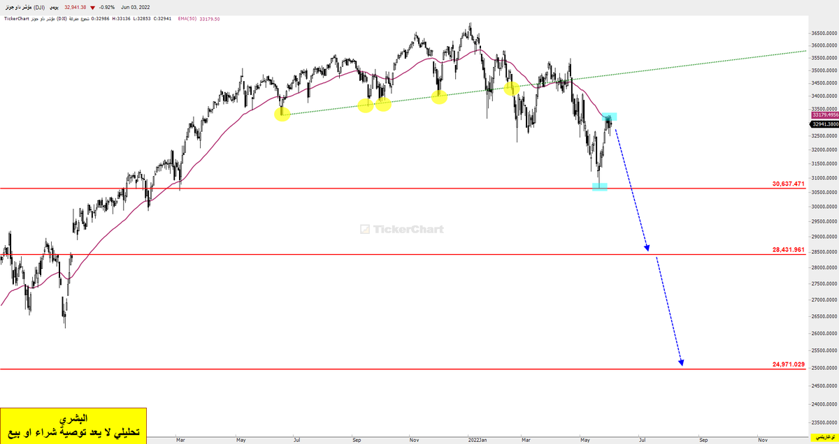 لازال مؤشر #الداو يحقق قيعان وقمم هابطة و أتوقع الهبوط القادم له سيكون بشكل حاد وقد يحقق الهدفين القادمين بشكل سريع نتابع ...