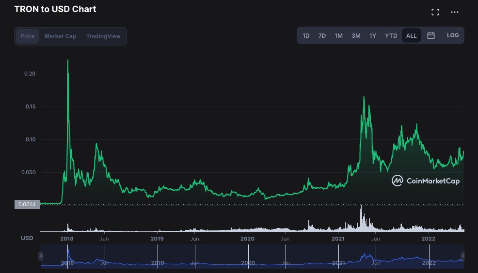 Potencjał do bezpiecznego wzrostu $USDD jest według mnie duży. Tron łapie pewne "momentum". Może to być okazja do wbicia się w trend. Wygląda na to, że aby osiągnąć 10 miliardów $ kapitalizacji trzeba będzie spalić mnóstwo $TRX. Obecnie kapitalizacja $TRX to 7,8 miliarda $.