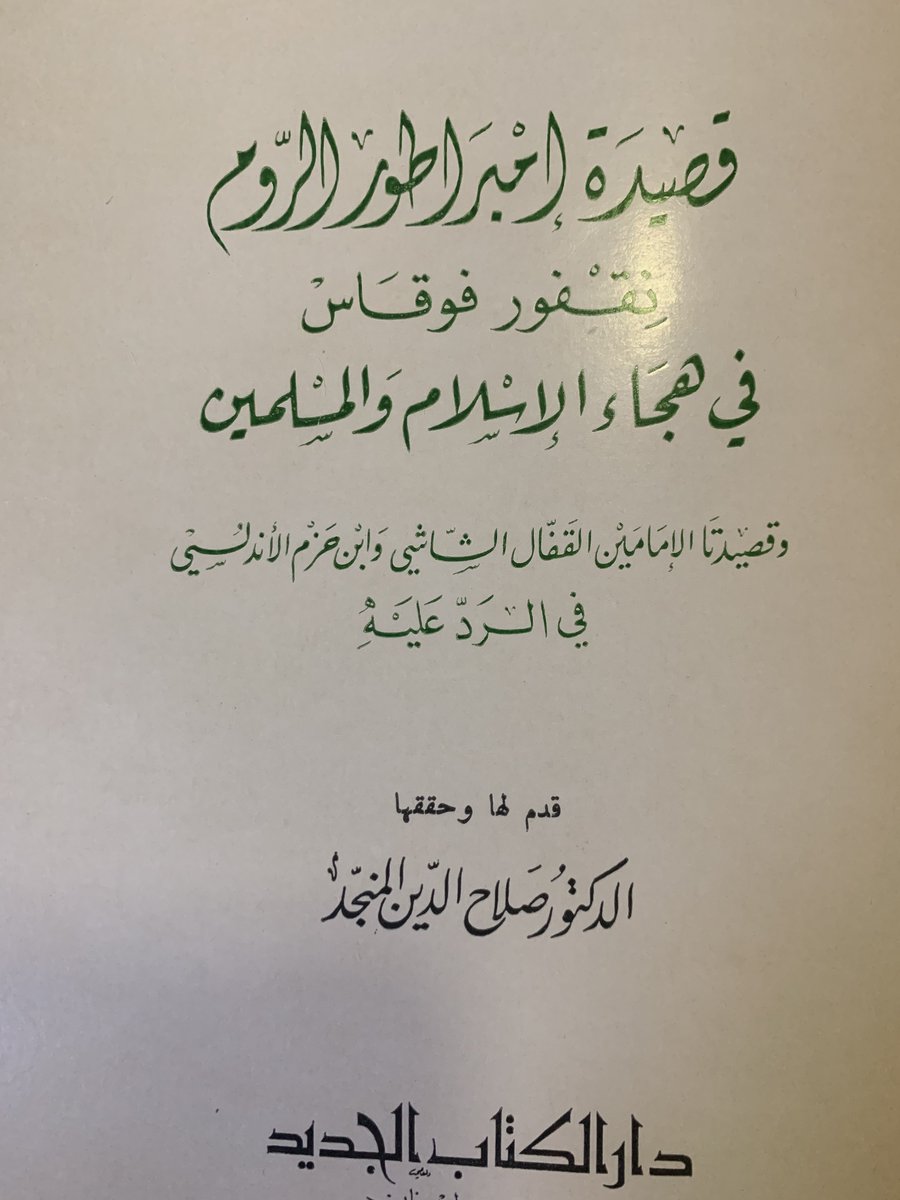 إضافة إلى الحروب التقليدية بين العرب المسلمين وبين الروم البيزنطيين المسيحيين في القرون الأولى من عصور الإسلام فإن الساحة العالمية آنذاك شهدت حرباً إعلامية تمثلت في قصيدة هجاء وشتم بعث بها إمبراطور بيزنطا في القسطنطينية إلى الخليفة العباسي في بغداد 1️⃣