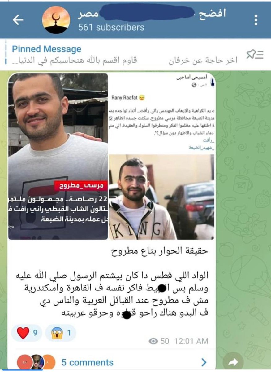 من فترة اتجمعت مجموعة شباب متطرفين علي جروب شات علي تليجرام بعنوان "افضح ملحدي و شو..اذ مصر" في الجروب ده كانوا بيستهدفوا نشر فضايح خاصة لناس باسم الدفاع عن الدين الإسلامي.