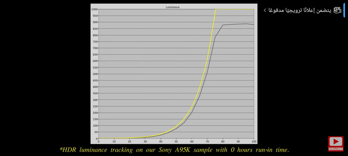 بعد تحديث البكسل صارت الشاشة تتبع EOTF لل Gamma 2.4 بشكل ممتاز لكن للأسف مثل شاشات سوني فيها رفع لظلال في اشارة الفديو 5% بشكل خاص تقترب من Gamma 2.2 نشوف اذا ممكن تكون افضل بعد 100 ساعة تشغيل وامكانية معايرتها