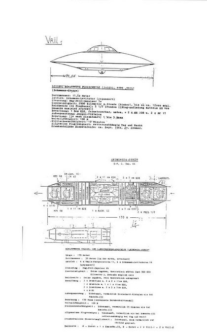 ومما يدعو للغرابة أن الألمان النازيين في القرن التاسع عشر استطاعوا صنع تقنية الأطباق الطائرة وكانوا يؤمنون بوجود عرق من المخلوقات الغريبة يعيش في مركز الأرض (أرضنا المجوفة) وبقوة غامضة تدعى فريل(Vril ) (أي تحضير الجن) يقول