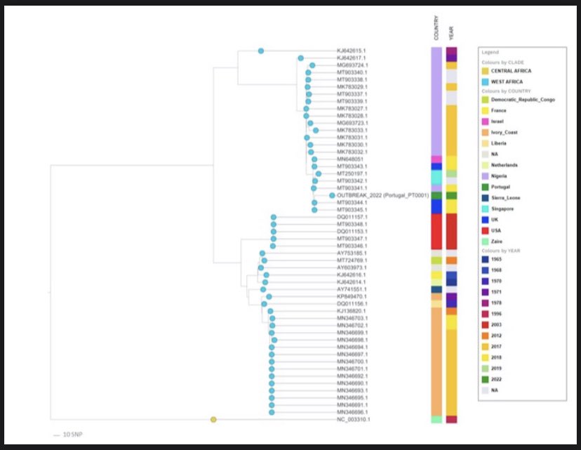 من المسحات الجينية في موقع virological.org يبدو بأن كل الحالات الجديدة من هذا النوع (الدوائر الزرقاء) ولكن يوجد 50 اختلاف جيني عن النوع القديم (قبل موجة مايو 2022)