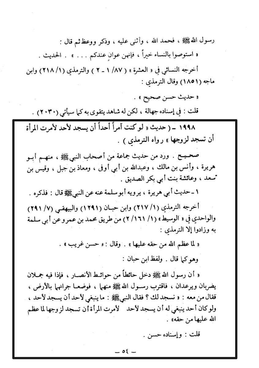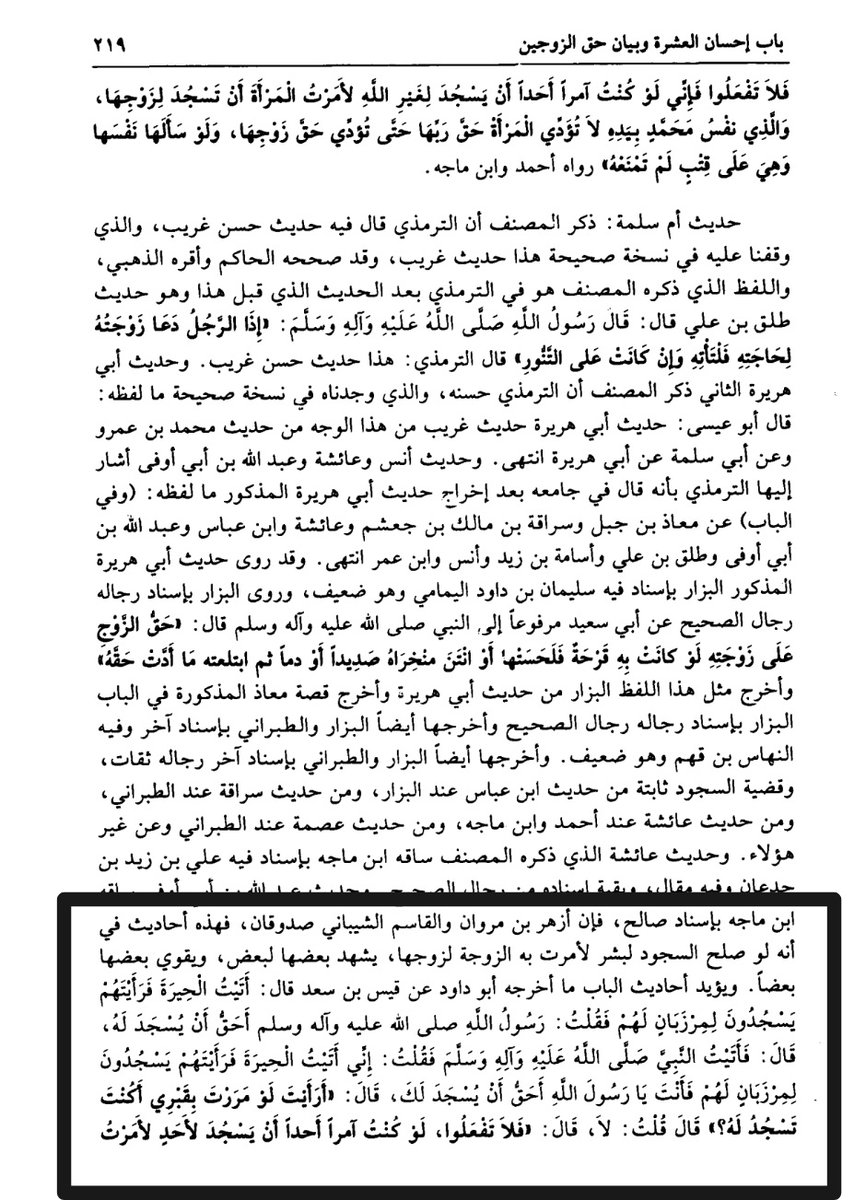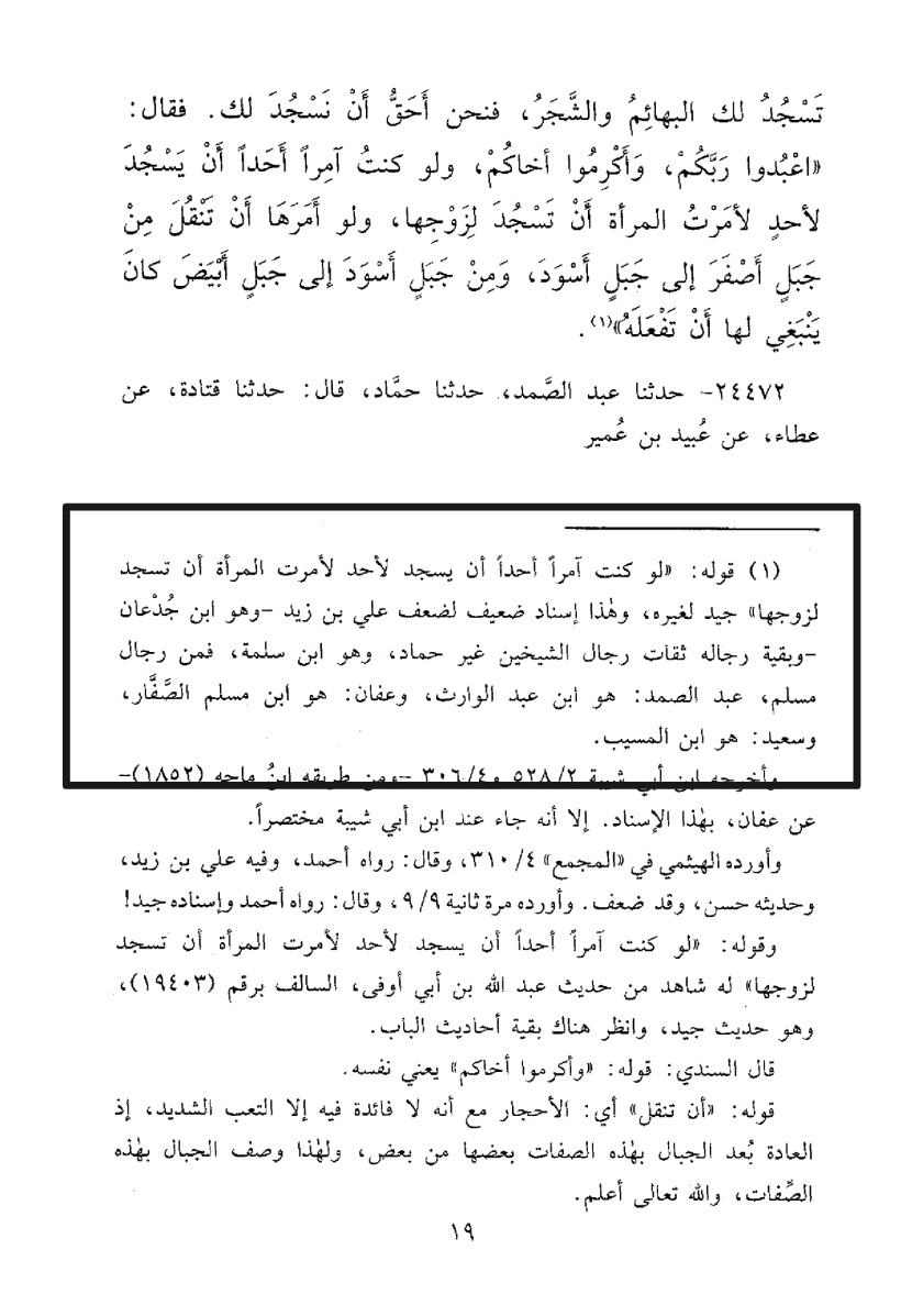حديث ( لوكنت آمراً أحداً أن يسجد لأحد...إلخ )