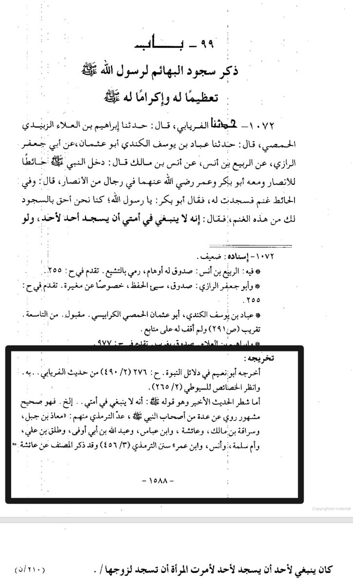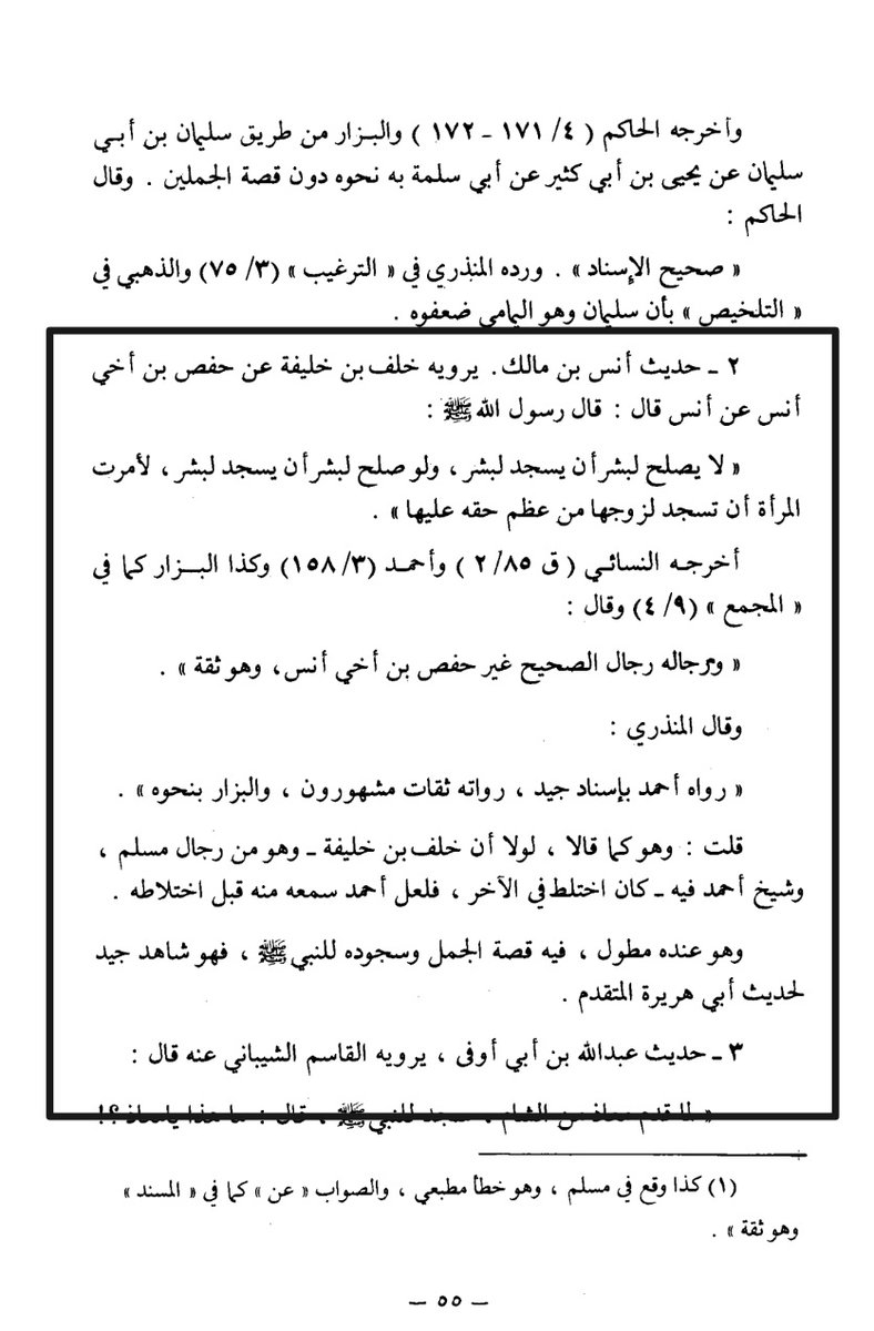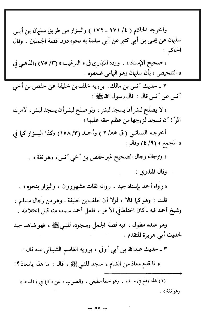 شعيب الأرنؤوط تخريج سنن أبي داود ٢١٤٠ صحيح لغيره دون ذكر السجود للمرزبان والسجود للقبر تخريج مشكل الآثار ١٤٨٧ حسن وللحديث شواهد كثيرة