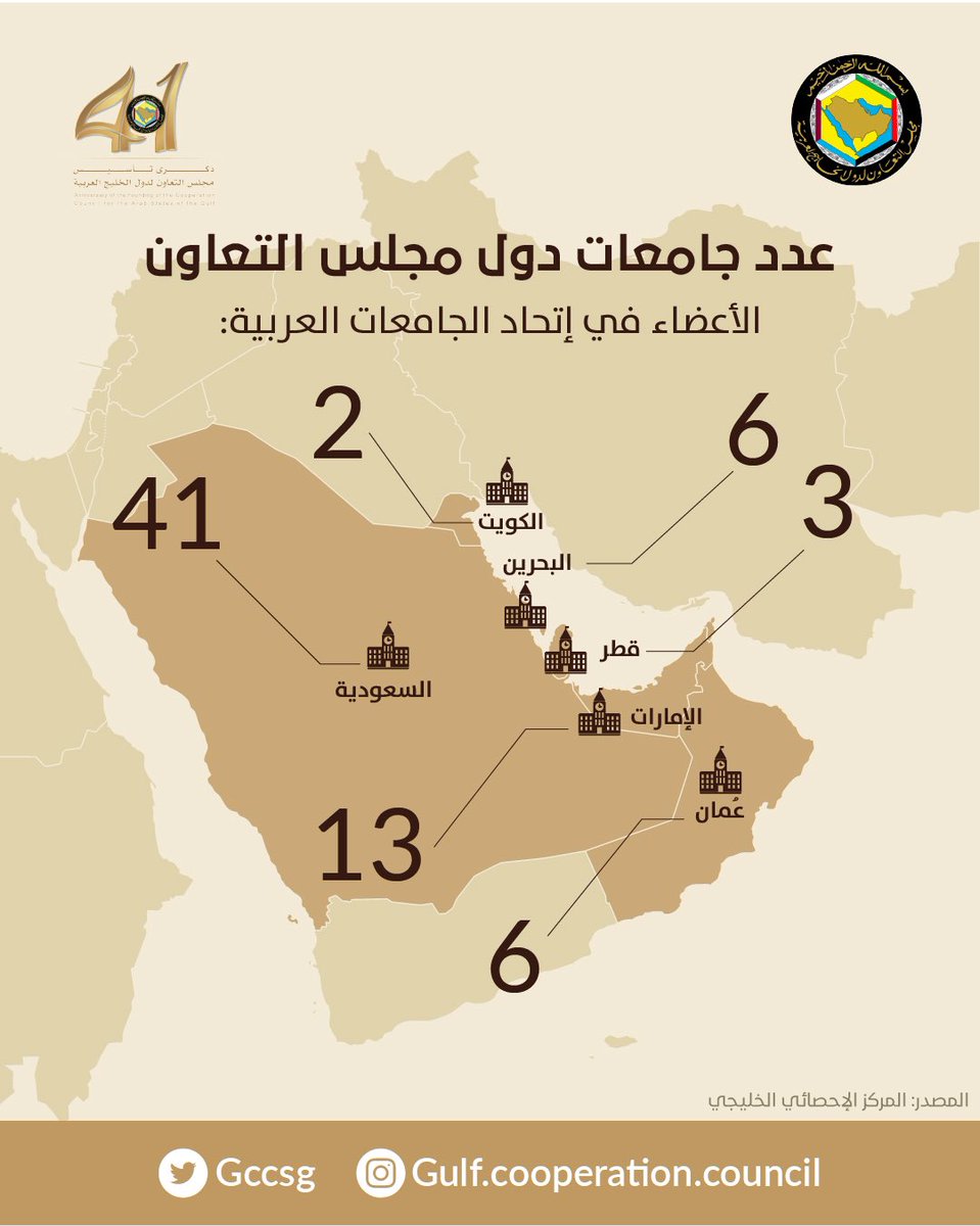 إحصائية عدد جامعات دول مجلس التعاون الخليج العربية في إتحاد الجامعات العربية