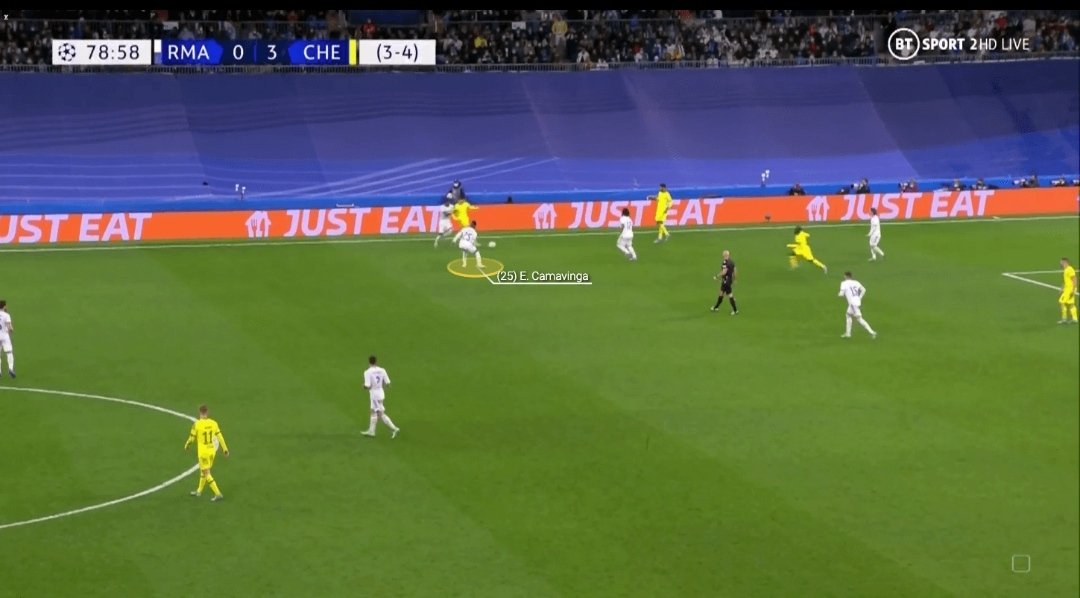 كامافينغا يتسم بالذكاء في كيفية استغلاله لجسده وتهيئة وضعه الجسدي بزاوية تُمكنه من التحرك ترادفيًا مع الكرة.