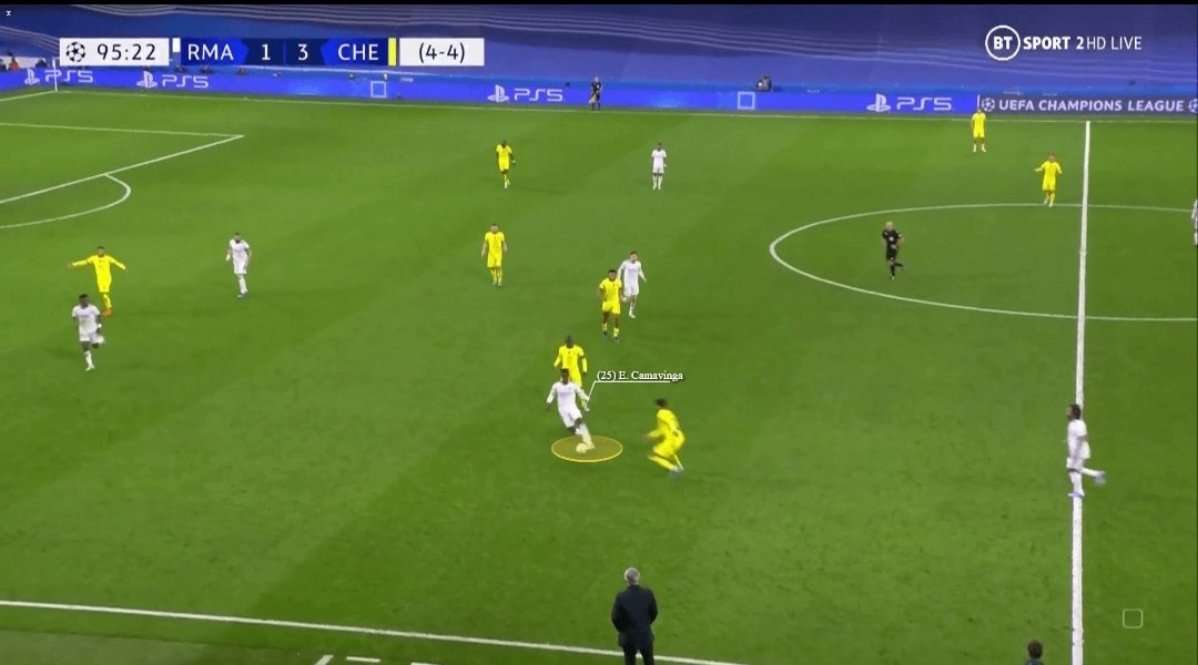 كامافينغا دخل لتكوين ثنائية محور بجانب فالفيردي في الـ4-3-3 ومنح مودريتش حرية هجومية أكبر. ورغم أنه قام بتوزيع تمريرات مميزة أثناء بناء اللعب، فـ شراسته وقدرته على تغطية الملعب هما ما أخلّا بإيقاع باريس.