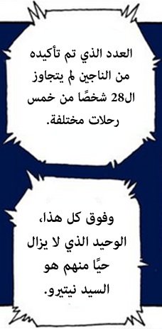 إضافة إلى أن العدد الذي تم تأكيده من الناجين لم يتجاوز ال[ ٢٨ / 28 ] شخصا من خمس رحلات مختلفة .