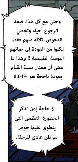 وهذا ما يعني أن معدل نسبة القيام بعودة ناجحة هو [ ٠,٠٤٪ / 0,04% ] لا حاجة إذن لذكر الخطورة العظمى التي ينطوي عليها خوض مواطن عادي للرحلة .