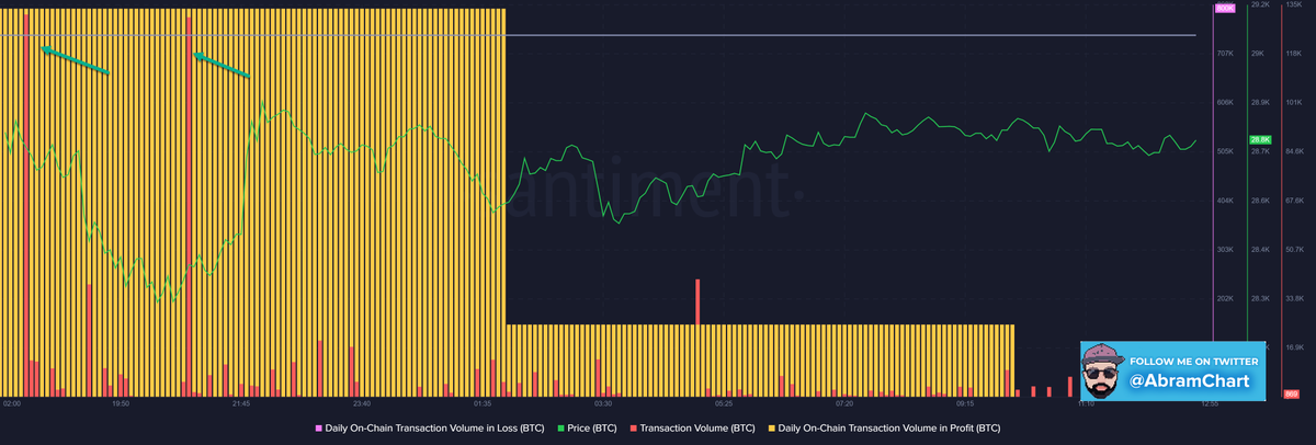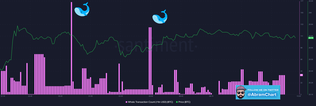 يعطينا مناطق تمركز الحيتان 🐋 خلال الساعات الاخيرة وهي بين 28600 - 28800 ونعتبرها متوسط سعري هام لـ #البتكوين للمدى القريب وفى الشارت رقم 4 هعرفك كانت بيع ام شراء