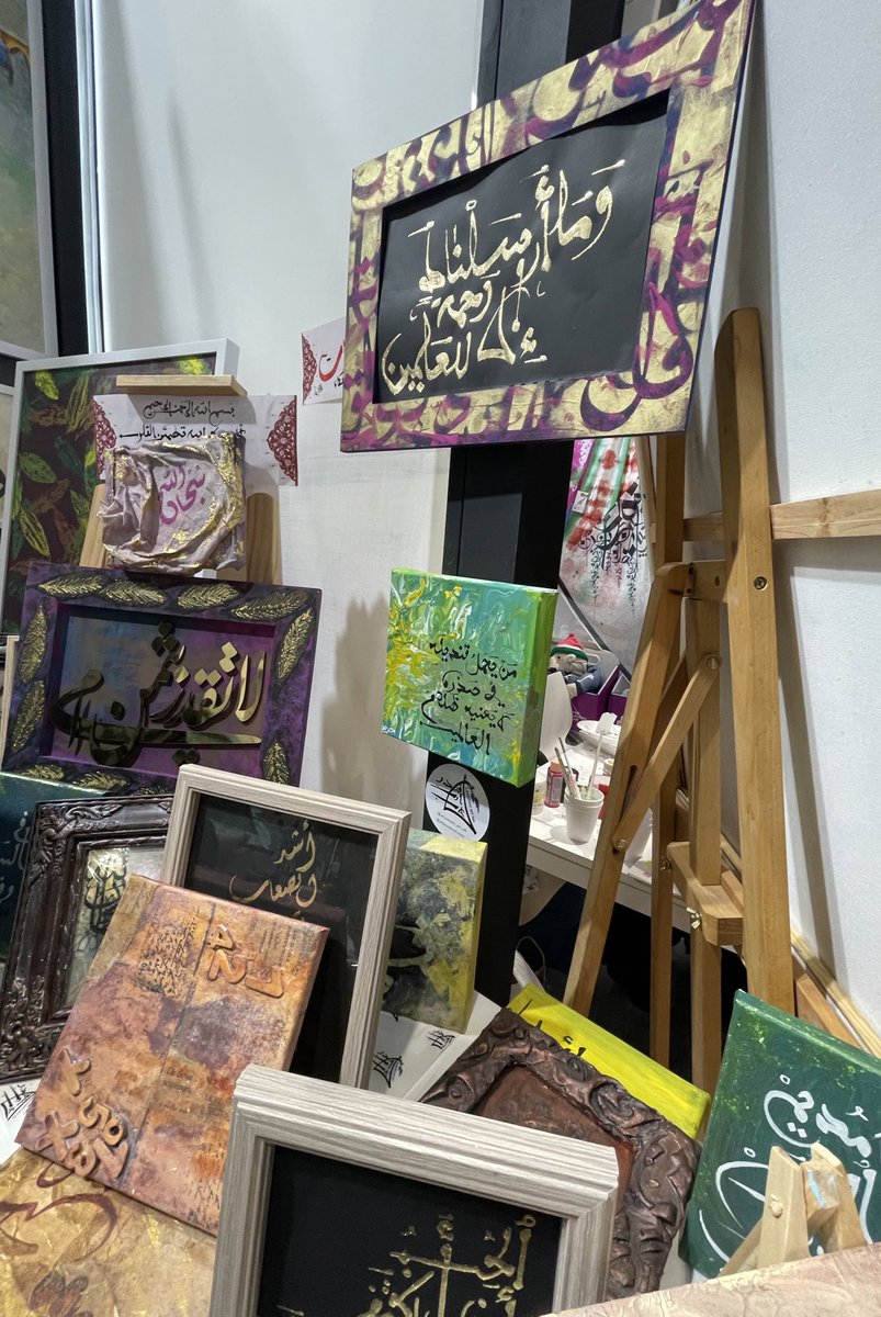 لفت انتباهي في هذا المعرض وجود أركان صغيرة تتيح للموهوبين فرصة عرض مشاريعهم ومواهبهم الفنية والأدبية (رسم،خط،تصوير،تصميم)