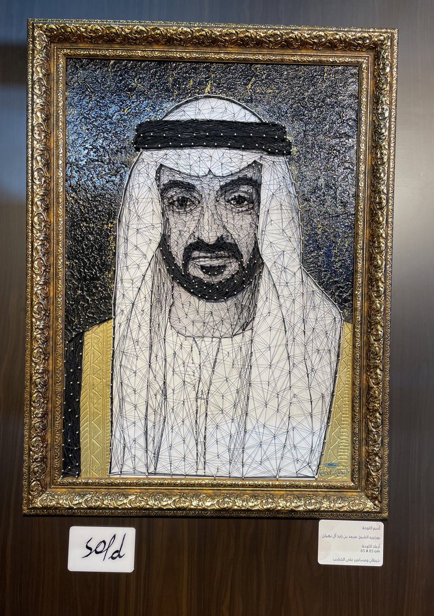 وهنا لوحة مرسومة تضمنت شيوخ الامارات رسمها في طبقات بحيث تتضح لنا صورة الشيخ #خليفة_بن_زايد ثلاثية الأبعاد..
