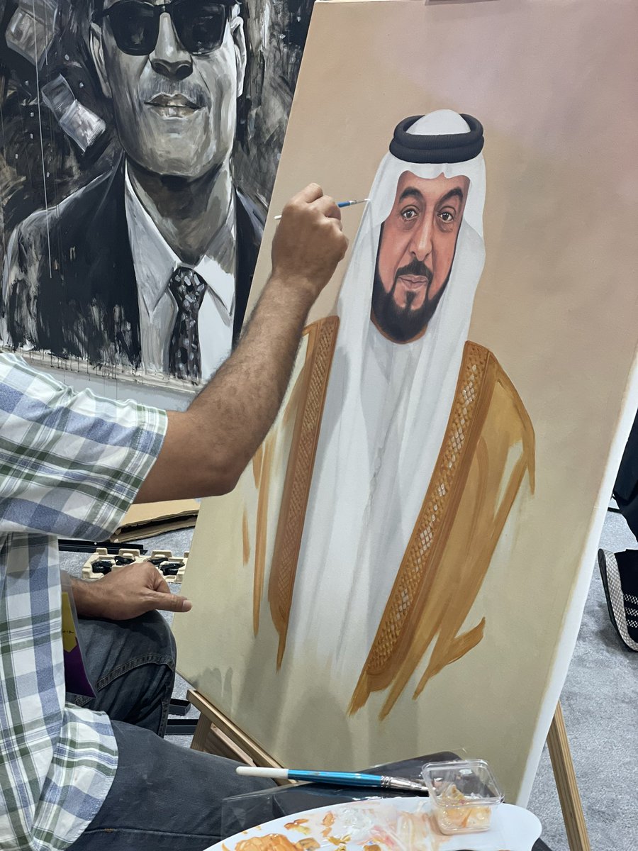 استوقفني هذا الفنان العماني المنهمك برسم لوحة متميزة جدا للشيخ #خليفة_بن_زايد رحمه الله