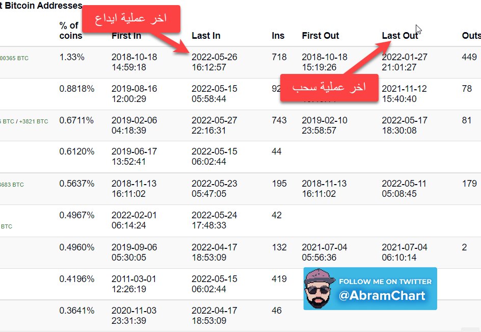 1⃣الموقع المستخدم يعطينا أكبر 100 محفظة تمتلك #Bitcoin فى العالم، رابط الموقع bitinfocharts.com