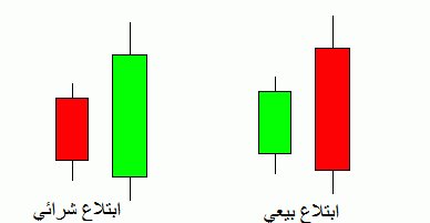 فمثلا شمعة الابتلاع الشرائي قد تظهر في نهاية اتجاه هابط لتبتلع الشموع الهابطة وتعكس الاتجاه والعكس تظهر شمعة الابتلاع البيعي غالبا في نهاية اتجاه صاعد لتبتلع الشموع الصاعدة وتقوم بتغيير الاتجاه