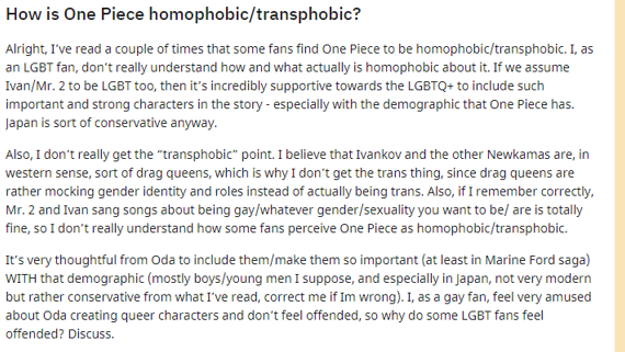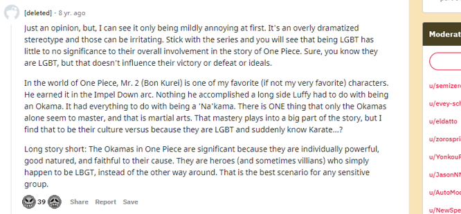 لو أن أودا كاتب آخر لقام بتغيير جنس ياماتو ليتناسب مع أهواءهم كي يتجنب غضبهم، ولكن أودا رجل صاحب رسالة، لن يهتم بنباح الشرذمات والعينات المريضة.