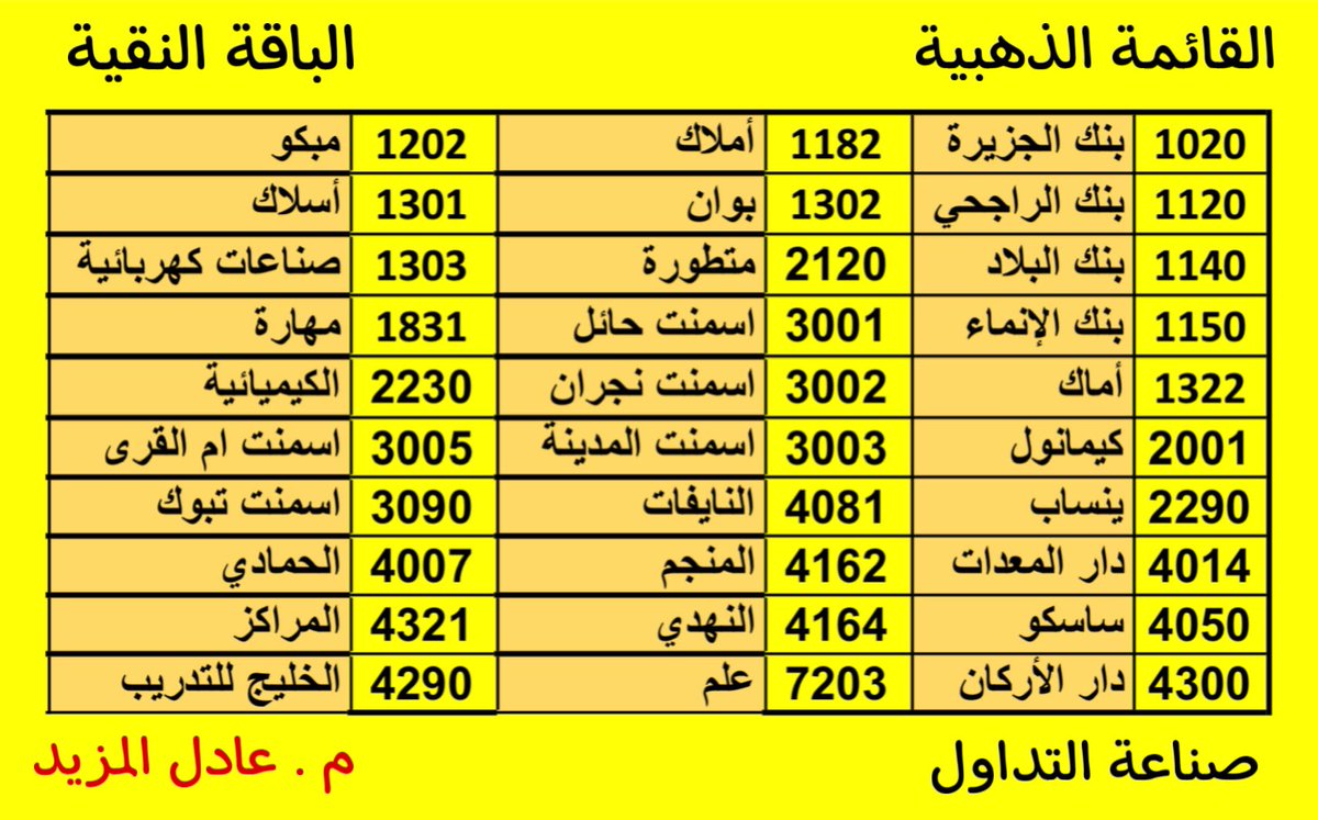 🔸 سوف يتم تحديث القائمة الذهبية كل 3 أشهر مع صدور القوائم الشرعية ومتابعة متوسطات الفوليوم اليومية والشهرية لهذه الشركات