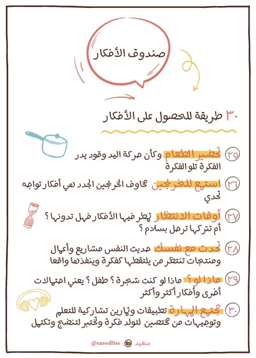 للوصول لتدفق الأفكار جمعت لكم في صندوق الأفكار 30 طريقة 📩
