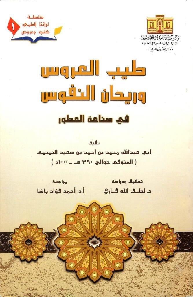 طيب العروس وريحان النفوس في صناعة العطور . لمؤلفه العلامة الطبيب ؛-
