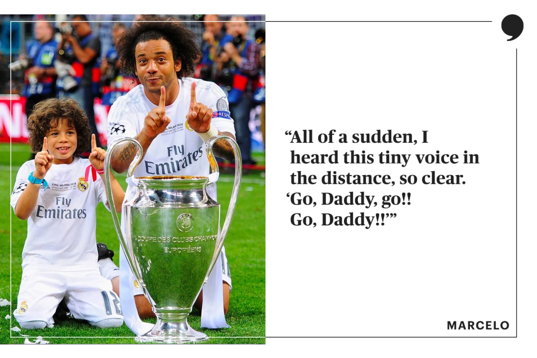 أتذكر أنني جلست في المكاتب في منشأة ريال مدريد بعد أن تلقيت العلاج الطبيعي، وقال أحد المدربين، "حسنًا، مارسيلو، عليك الذهاب لشراء بدلة وربطة عنق غدًا."