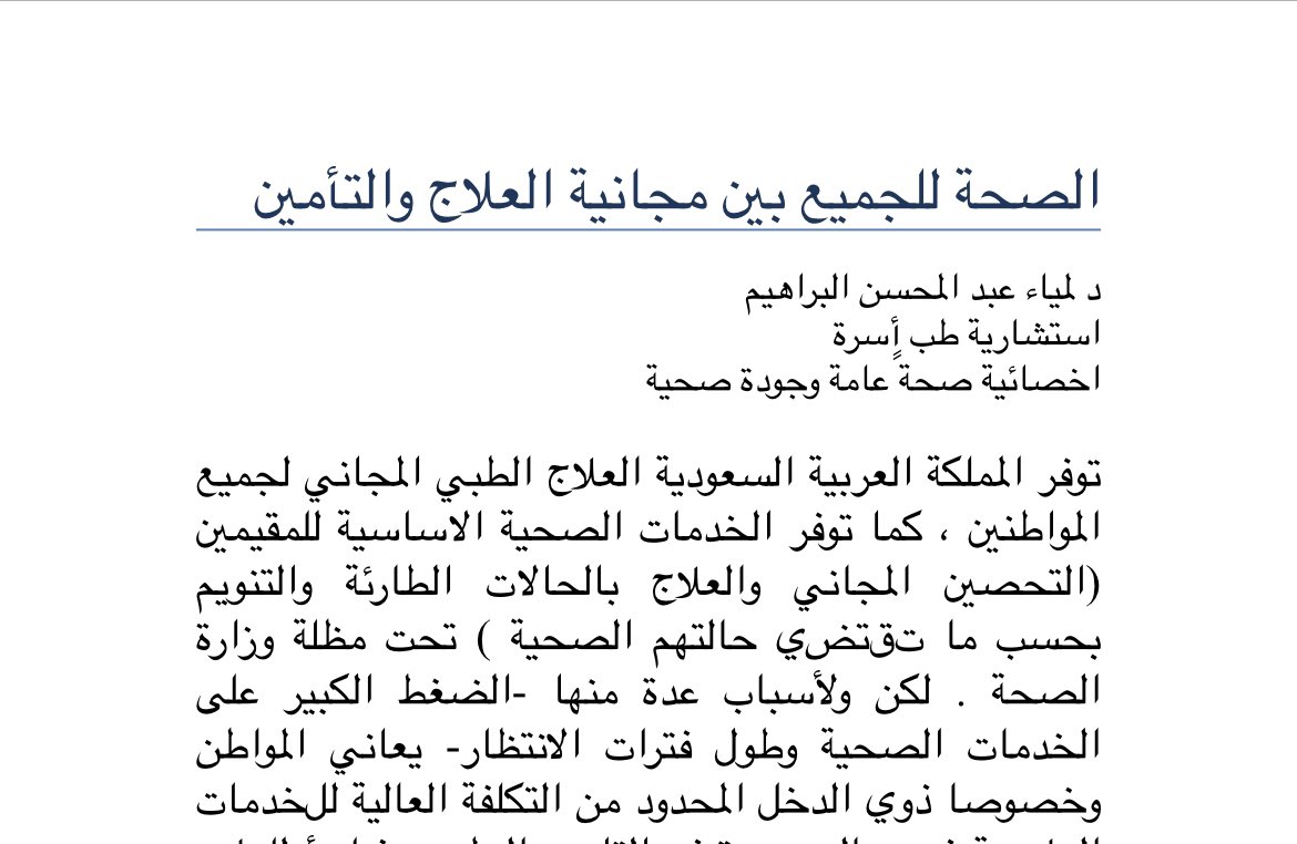 و #السعودية يتكفل نظام الحكم بتامين العلاج والتعليم للمواطنين لكن لا يشترط أن تكون الحكومة هي من تقدم الخدمة ويمكن تقديمها عبر الوسيط من خلال #الخصخصة و #التأمين_الصحي