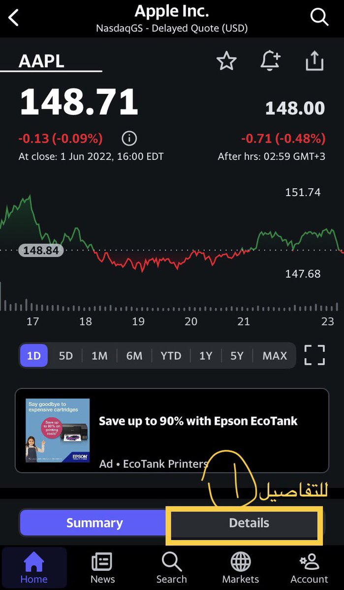 و راح نستخدم تطبيق مجاني على الجوال واللي هو "ياهو فاينانس Yahoo Finance " للحصول على البيانات اللي نحتاجها