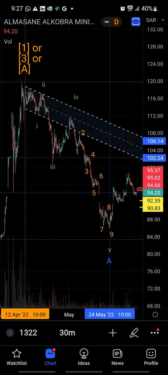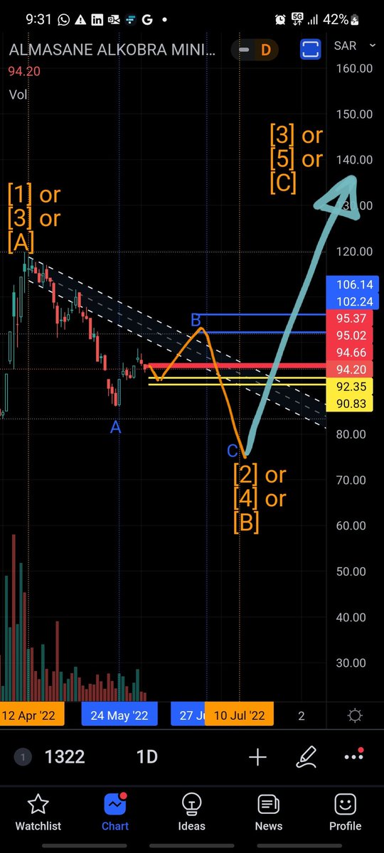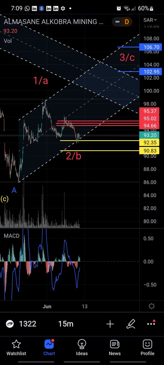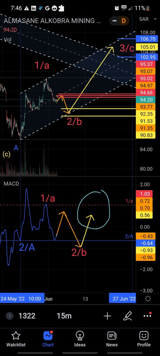 يوم الاحد سيبين هل يحقق هدفه الثاني 90.85 ريال ويصعد ام سيكتفي بهذا النزول ويصعد لمناطق 102 - 106