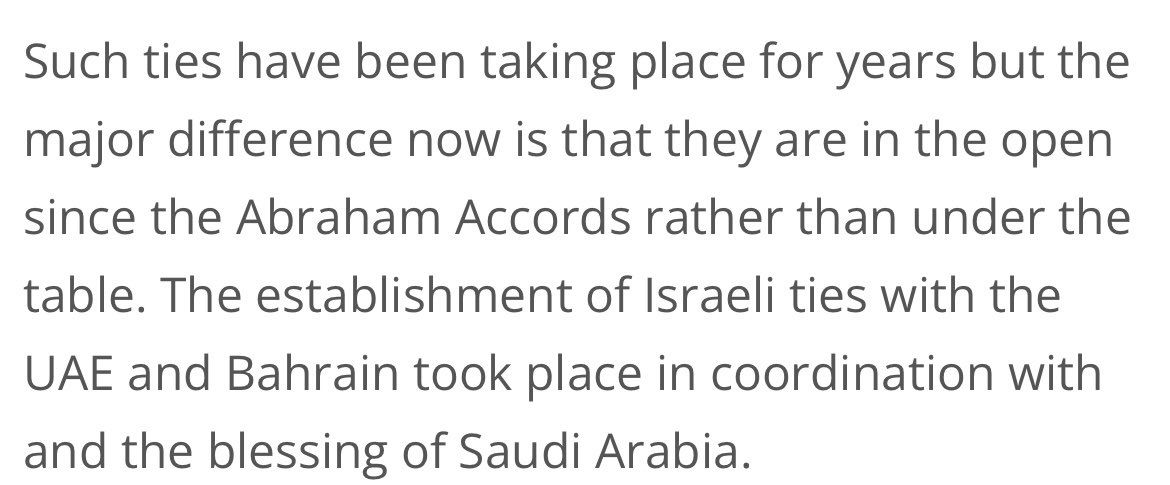 ثالثاً: ذكر الصحفي ايضاً بانه إتفاقية السلام التي كانت مابين #الإمارات و #إسرائيل و مابين #البحرين و #إسرائيل كانت بتنسيق مع #المملكة_العربية_السعودية وهذا كلام غير صحيح ايضاً لنه المملكة تسعى لتحقيق مبادرة السلام العربية والدليل تفضلو .. 👇arabic.cnn.com