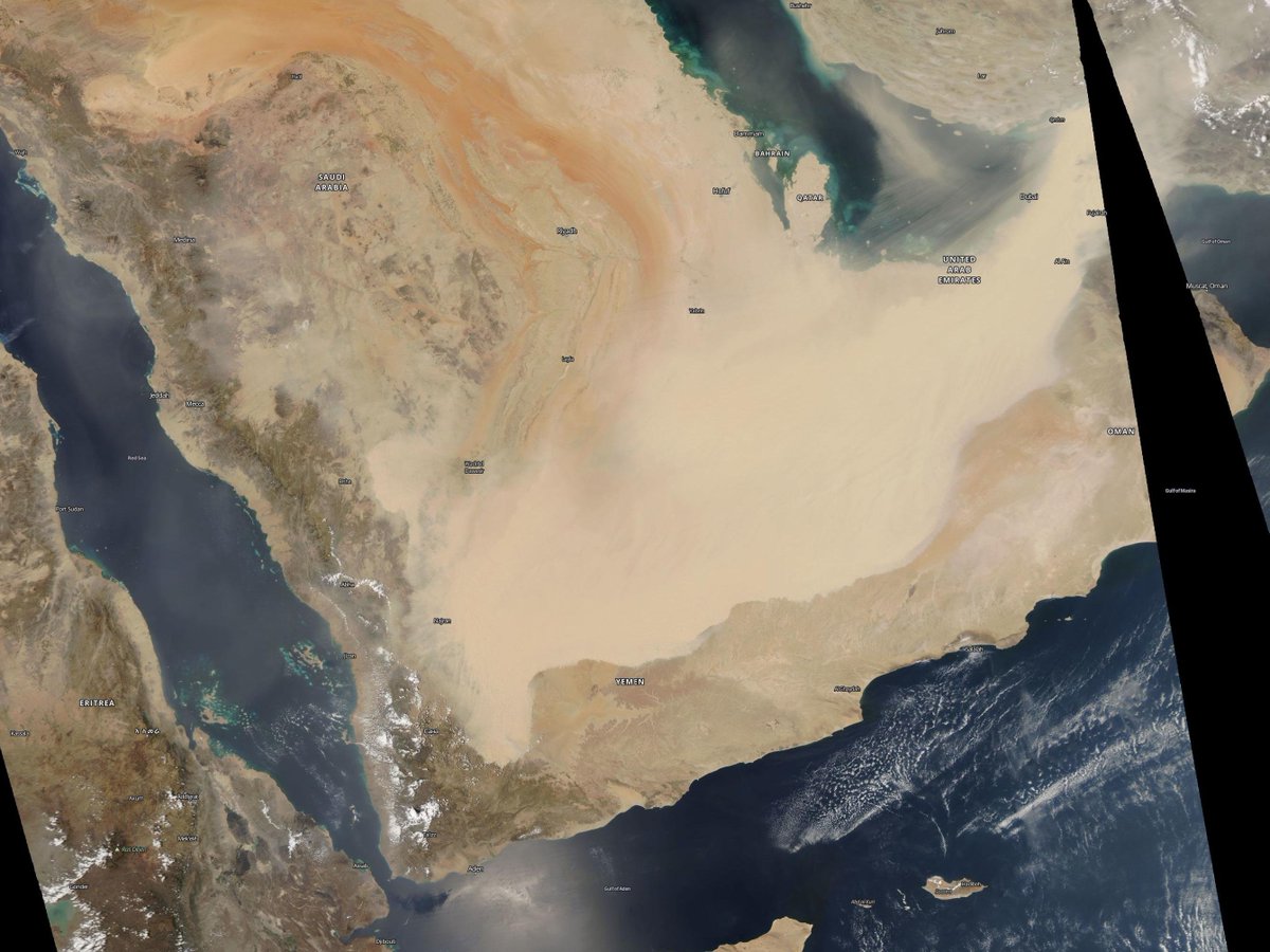 الجافورة حيث تتموضع في حوض الربع الخالي، ويشار إلى أن رمال الربع الخالي أصلها شمالي المصدر، والربع الخالي يعتبر ممراً للعواصف الشمالية المصدر، وعند عبورها فوقه (قد) يساهم فقط في زيادة كثافة العاصفة المنقولة من الشمال لتؤثر على منطقة #نجران، وعمان، واليمن على أكثر تقدير.