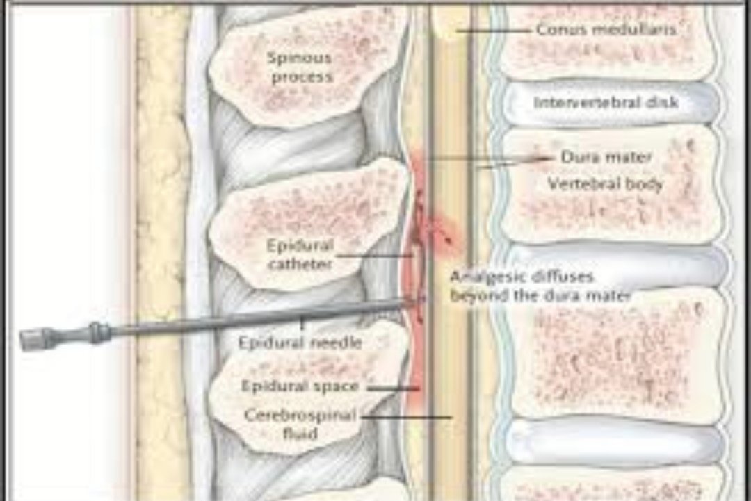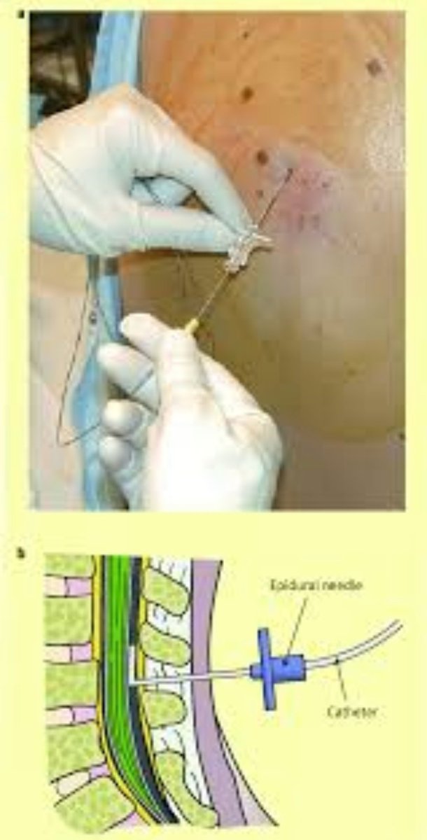 بعد التأكد من قمة الابرة مكانها يقوم طبيب #التخدير بادخال قسطرة دقيقة من خلال الابرة حتى ٥ سم داخل تجويف فوق الجافية ومن ثم يتم سحب الإبرة من خارج الظهر وتثبيت القسطرة الدقيقة الخاصة في ظهر المريض.