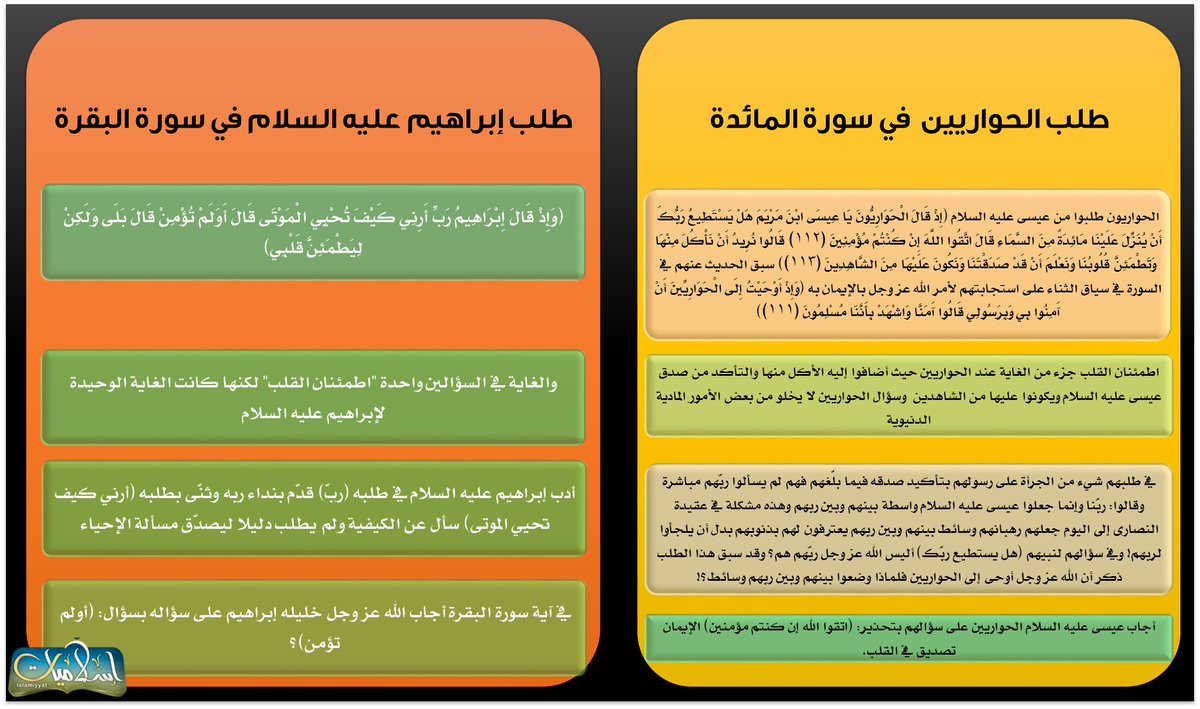 مقارنة بين طلب الحواريين وطلب إبراهيم عليه السلام في سورة البقرة:
