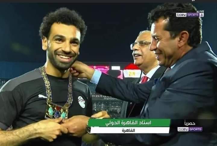 مصر تهدى نسخة مقلدة من قلادة الملك الذهبى "توت عنخ آمون" للاعب المصري محمد صلاح قبل مباراة مصر مع غينيا أمس 👑