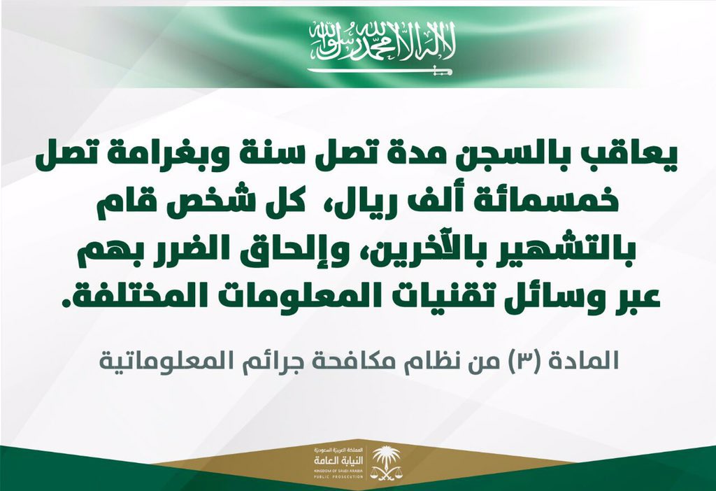 #التشهير في ذاته عقوبة، كعقوبة الحبس أو الغرامة، ولا يجوز إيقاع العقوبات على الأفراد إلا وفق ما تنصّ عليه الأنظمة وبموجب أحكام قضائيّة، وهذا ما نصّت عليه المادة (٣٨) من النظام الأساسي للحكم.