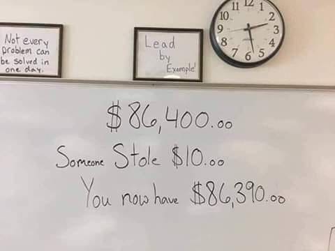 الـ 86.400 دولار ، هي في الحقيقة عدد الثواني في اليوم الواحد ... وانت مقابل كلمة قالها لك أحدهم وأزعجتك أو موقف أغضبك في 10 ثواني، ستبقى تفكر في ذلك الموقف لبقية اليوم و تجعل الـ 10 ثواني تضيع لك الـ 86,390 ثانية.