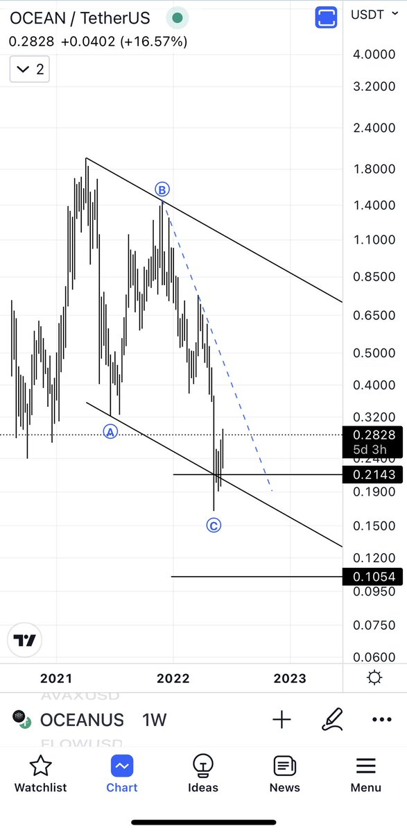 #Chr عليها نموذج ولفي ويف بس ننتظر نموذج عاكس تحت ونتوكل على الله عشان نعرف وين نحط وقف الخسارة اما من ناحية اليوت ف الهبوط يحتمل اكثر من نموذج ويطول الشرح 🤝