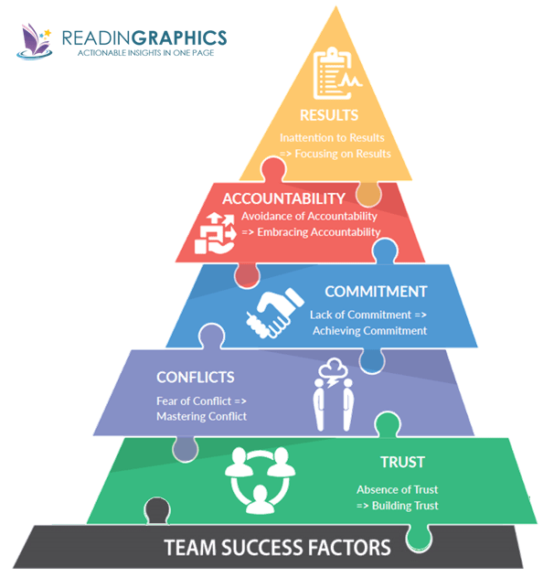 🔹في كتاب "العوامل الخمسة لاختلال العمل الجماعي"، ذكر الخبير الاداري باتريك لينسيوني: