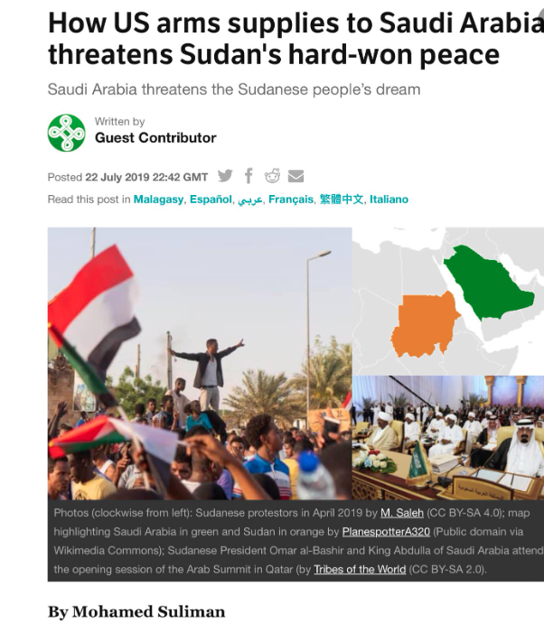 كنت قبل فترة نشرت مقال يحاجج علي وقف بيع السلاح الأمريكي للسعودية لانه بصل الجنجنويد