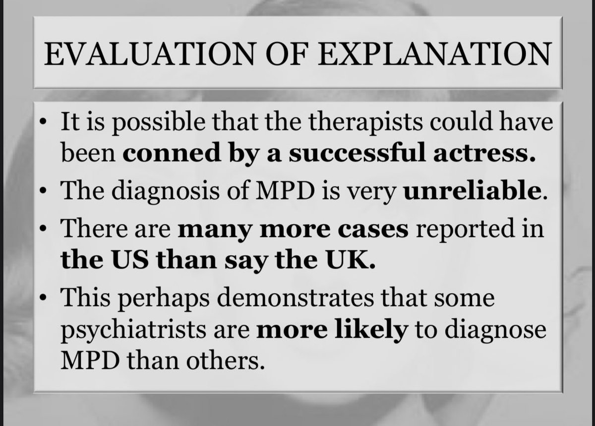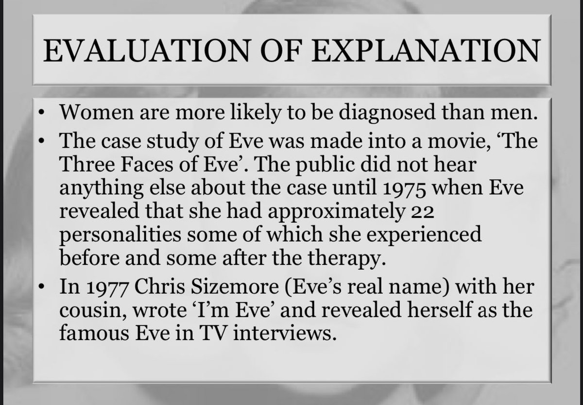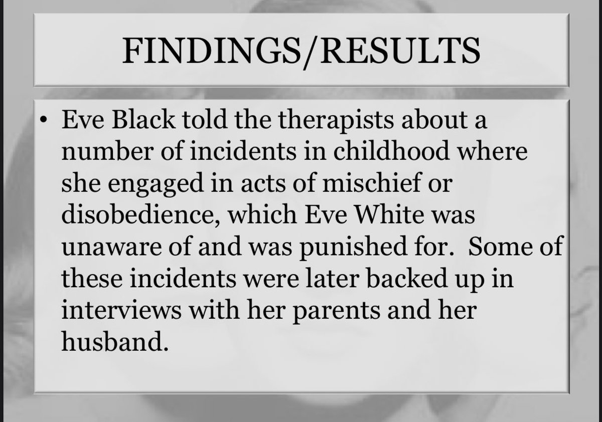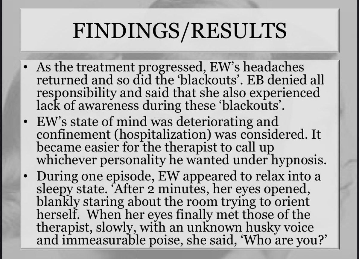 ذكر ثيغبن معلومة أنه من الممكن ان هذه الحالة تطوّرت وأن كريستين صنعت هذه الشخصيات بسبب أنها شهدت حادث مروّع في طفولتها ومات أمامها شخصان، وكل هذا خلال ٣ شهور فقط.